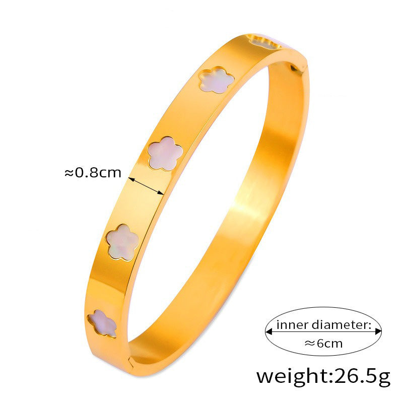 This bracelet is made of high-quality 18K gold, combined with a simple and elegant flower-inlaid gemstone design, perfectly showing the noble and elegant atmosphere. The exquisite flower shape and the shining gemstone complement each other, making the bracelet simple and gorgeous, suitable for various occasions to wear, showing your unique taste.
