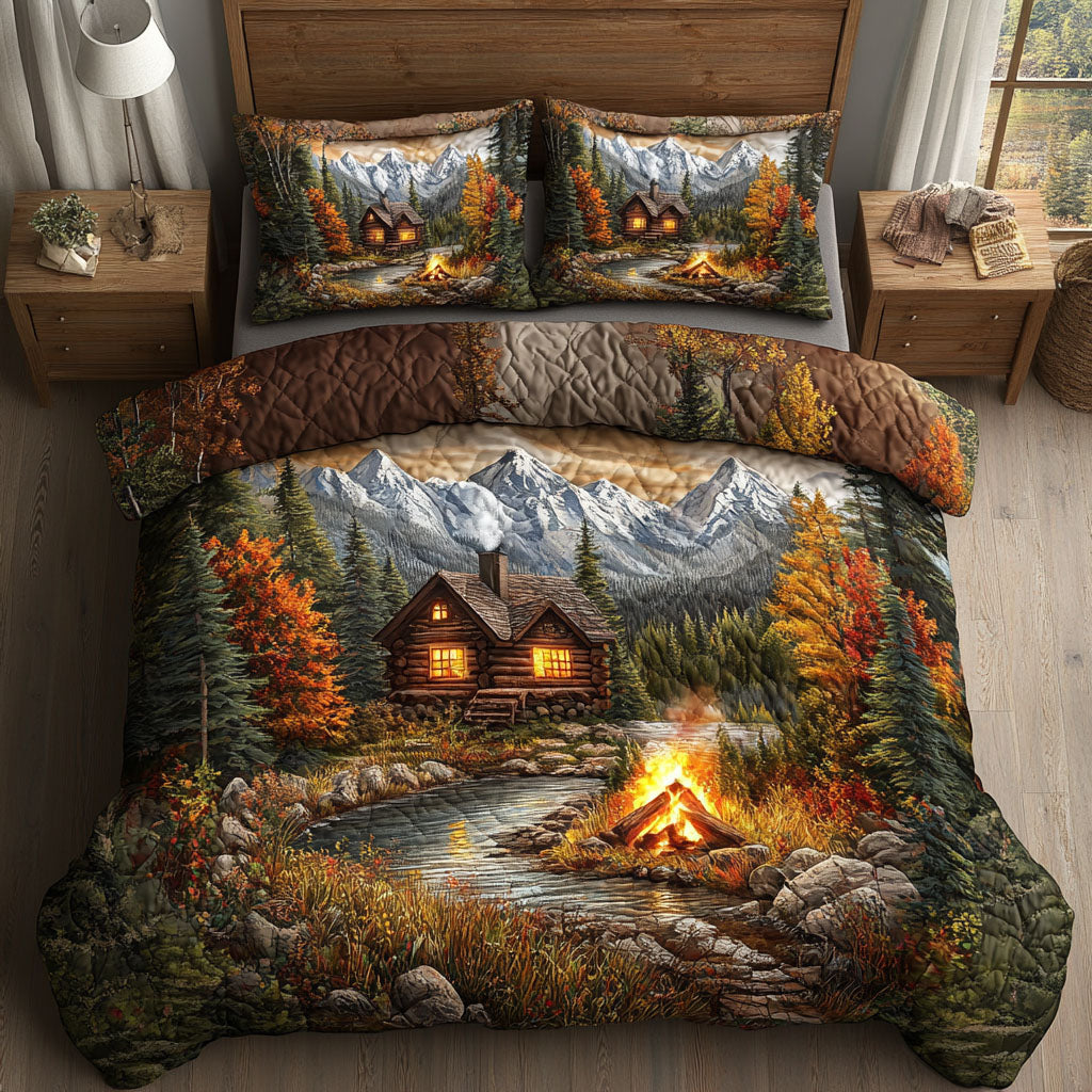 Cabin Campfire Mountains 3-Piece Quilted Bedding Set NCU0NT5163
