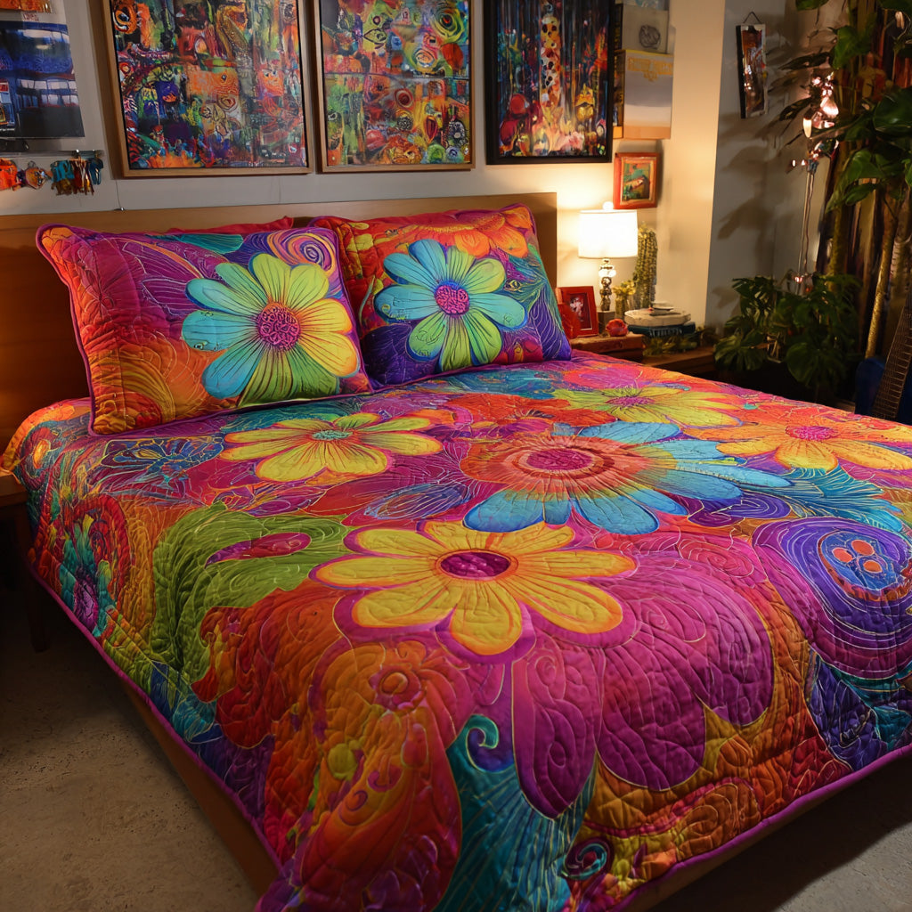 Groovy Daisy Pop 3-Piece Quilted Bedding Set NCU0VL3056