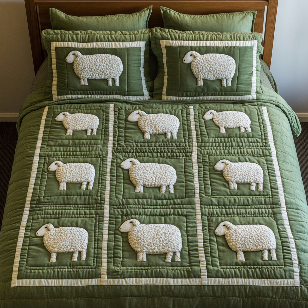 Lamb Meadow 3-Piece Quilted Bedding Set NCU0DK2312
