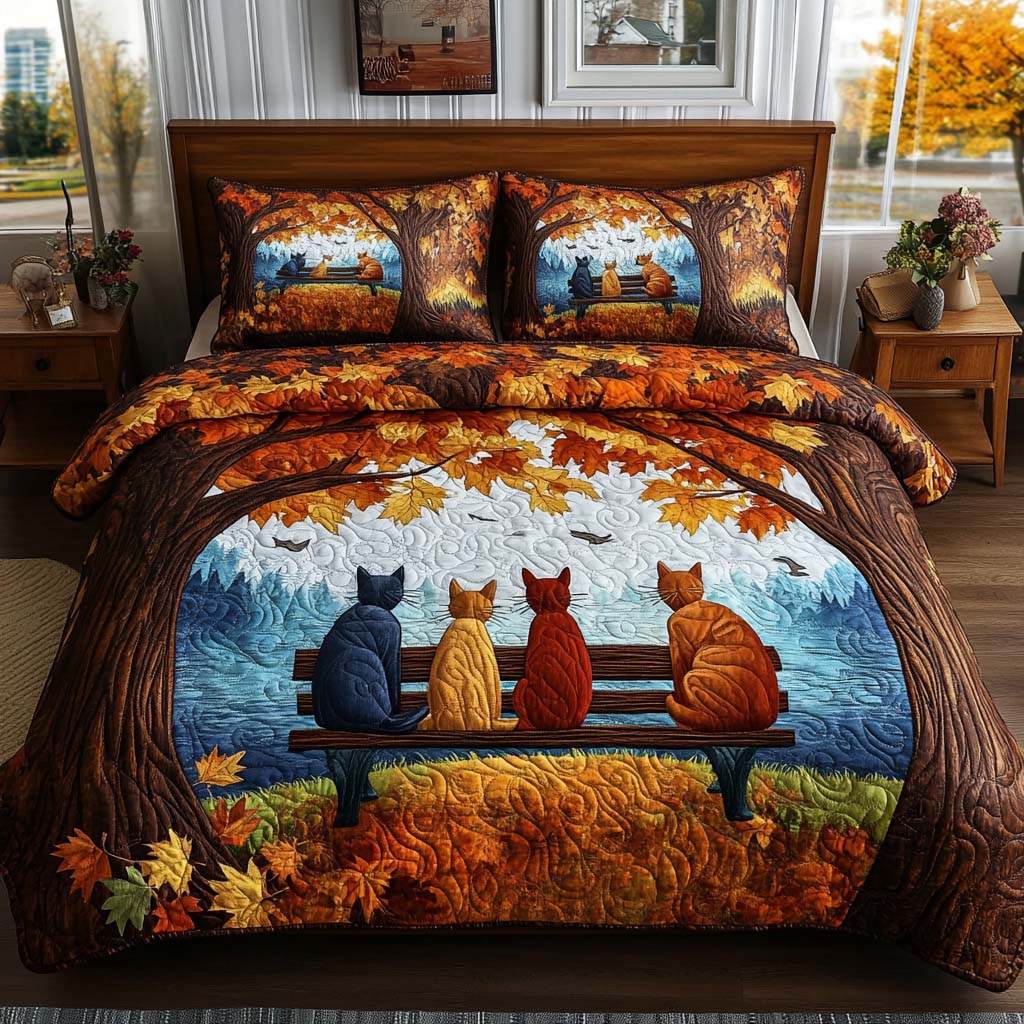 Embrace the Golden Glow of Autumn. Transform your bedroom into a cozy fall sanctuary with the Maple Cat Magic Bedding Set. This artisanal collection captures a peaceful moment of four feline friends overlooking a misty mountain lake, surrounded by the rich oranges and golds of peak maple season. It is the perfect blend of playful artistry and sophisticated comfort for cat lovers and nature enthusiasts alike.