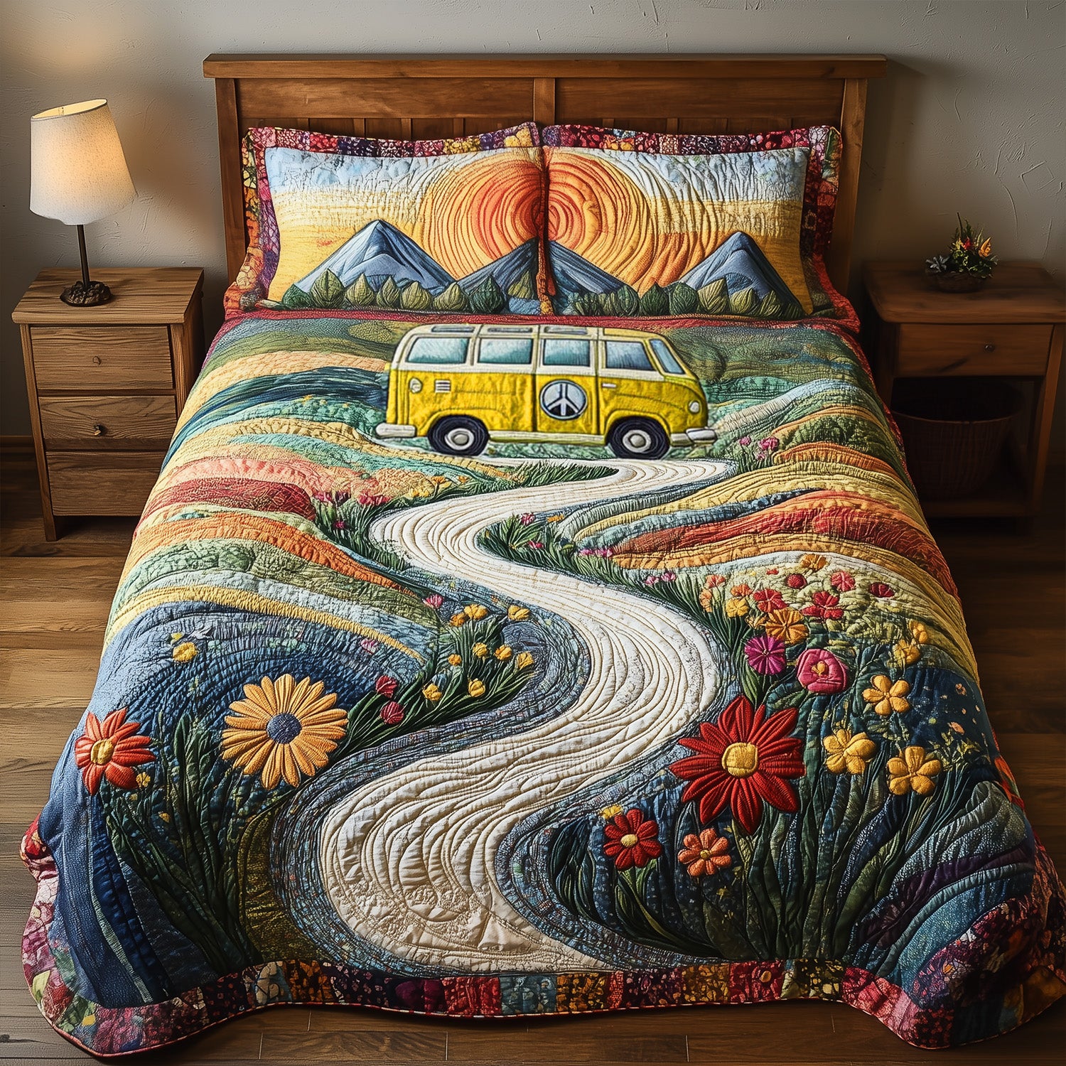 Vintage Wanderlust V2 3-Piece Quilted Bedding Set NCU0PT5291