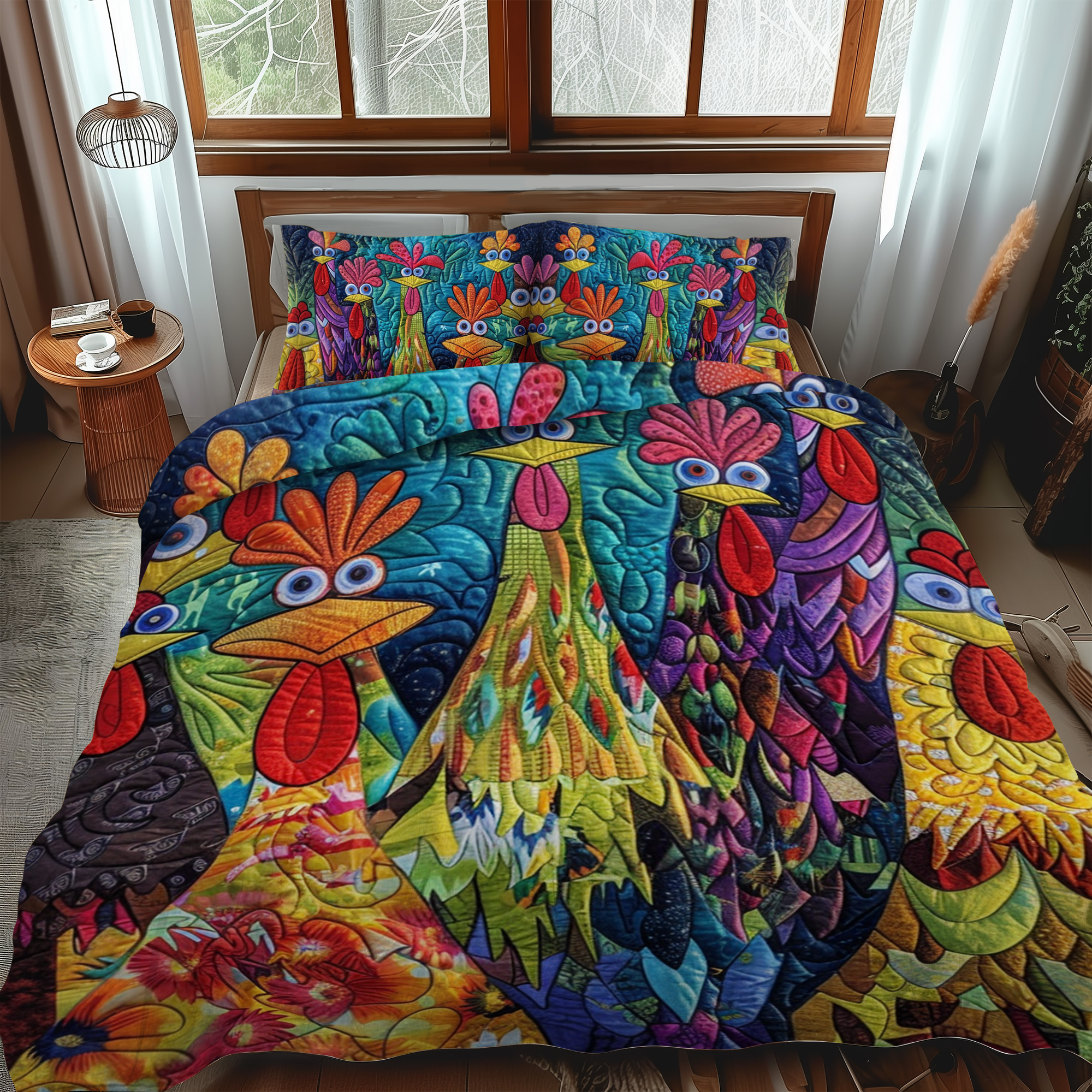 Whimsical Chickens 3-Piece Quilted Bedding Set NCU0PT054