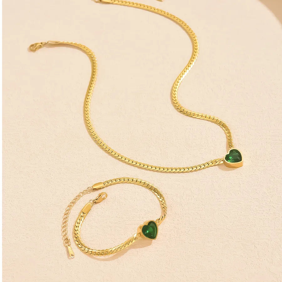 Wholesale Jewelry Sexy Romantic Heart Shape 304 Stainless Steel 18K Gold Plated Cuban Link Chain Curb Chain Bracelets Necklace Jewelry Set